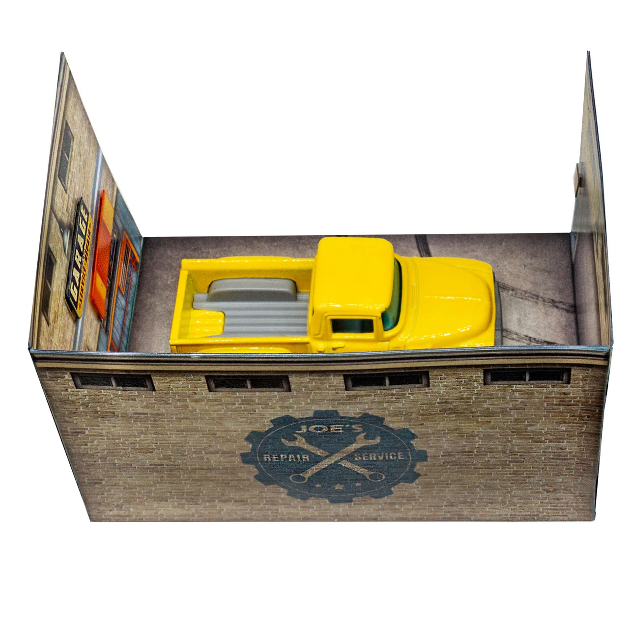 “Repair Garage Diorama” Photo Real Scale Building Kit is a complete scale model set that comes ready to trim and assemble.
