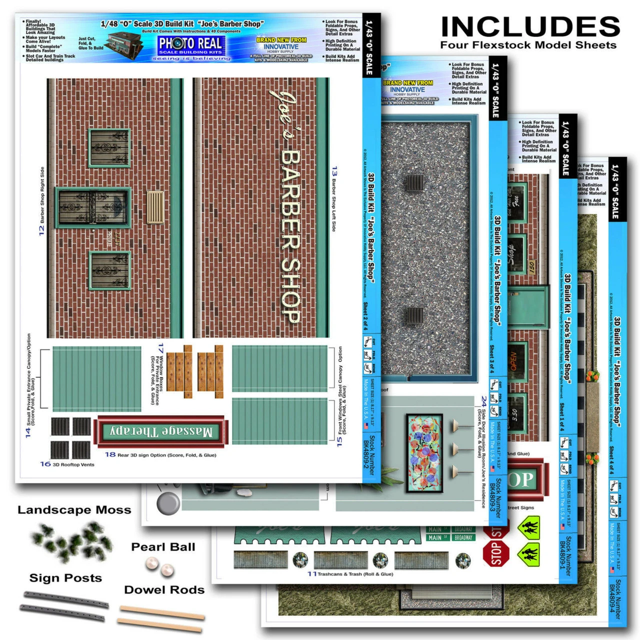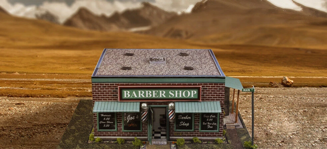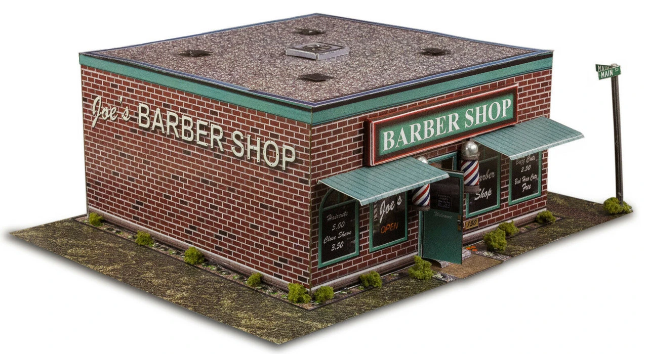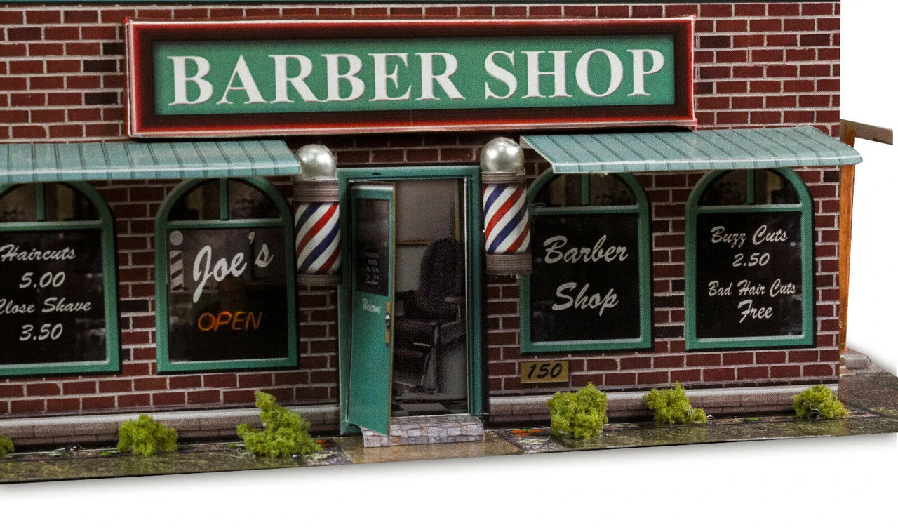 Barbershop Photo Real Scale Building Kit is a complete scale model set that comes ready to trim and assemble.