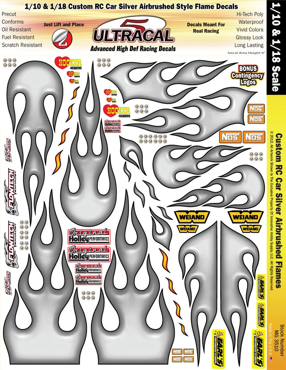 Made from highly precise equipment to achieve maximum detail and produced with a new micro-thin, space-age poly material using high-definition graphics. All of our Ultracal decals are bright, glossy, precision pre-cut, and fully opaque to achieve that high definition finish.