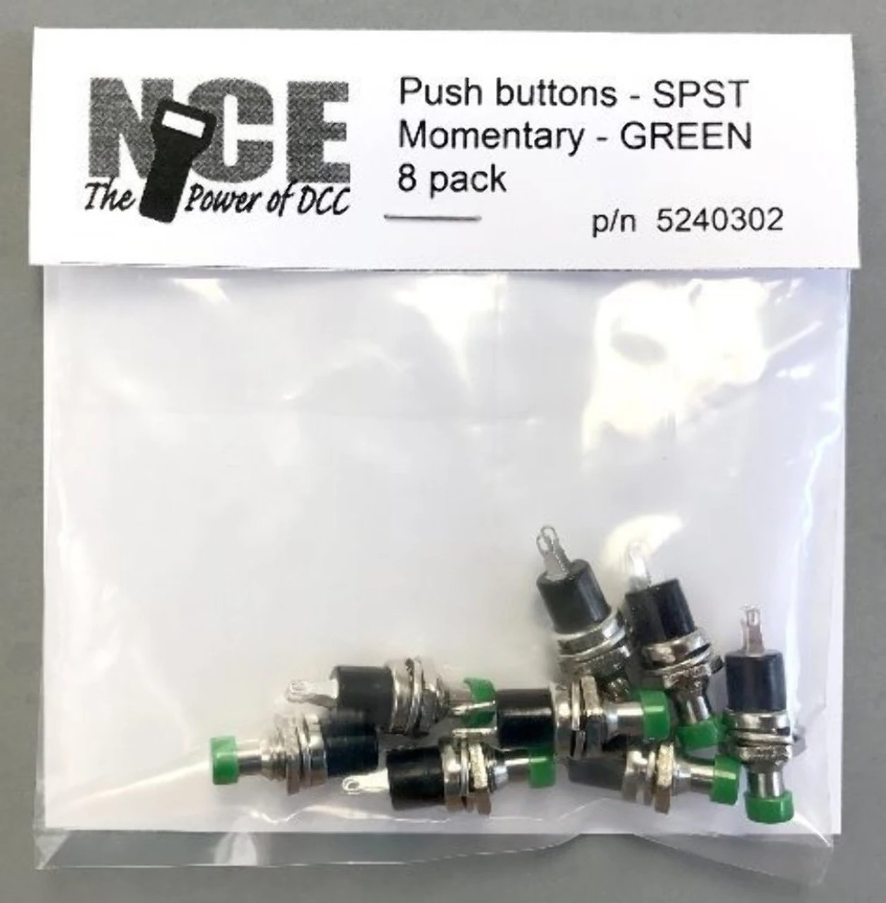 NCE 5240302 8 Pack N.O. Momentary SPST Pushbutton Green 1/4 Mounting Hole