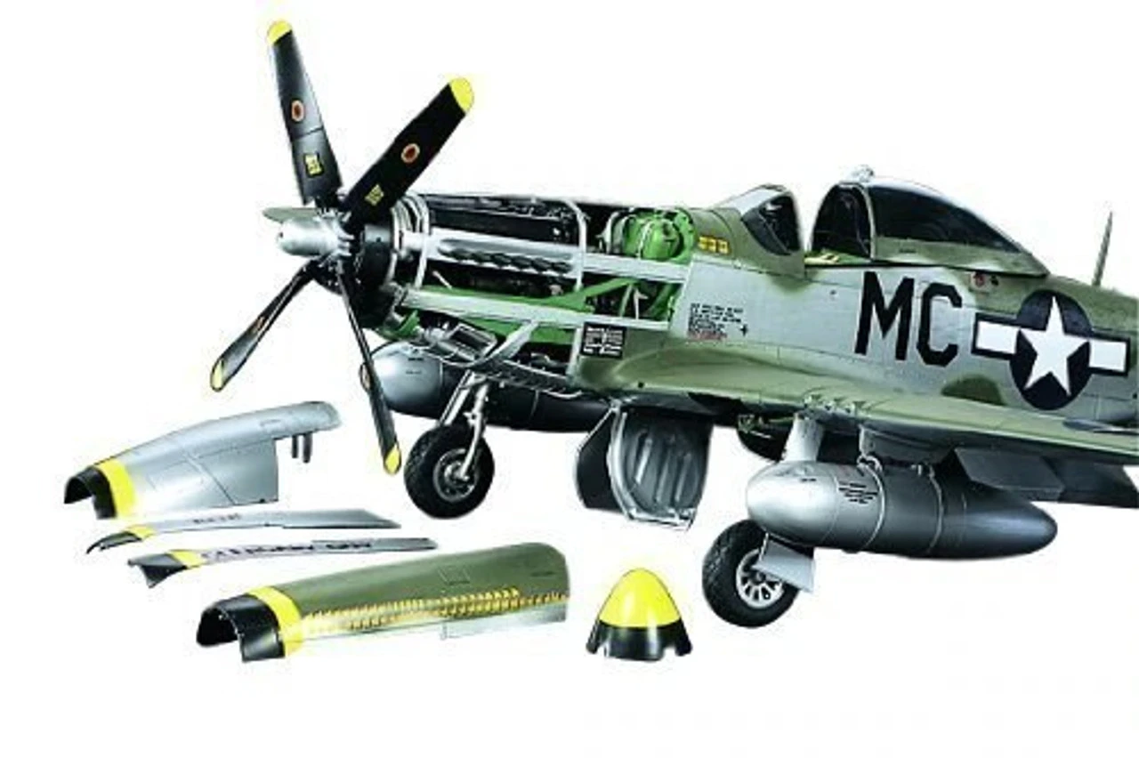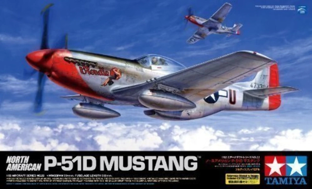 1-32 Scale. Iconic long-range fighter, ‘D’ bubbletop variant with optional parts to build early or late versions. Kit possesses excellent engraved panel surface features, highly detailed cockpit and full Packard Merlin V-1650 engine (faired within suitably thin, removable, magnetically secured cowling panels). Includes many assembly options: sandwich construction instrument panel (2 patterns); exhaust stacks (with or without fairing); seats (2 types); rearview mirrors (4 types); canopies (3 types); empennage (with or without fin fillet); drop tanks (75 and 108 gallon) and gunsight (K-14 or N-9). Also features: movable elevators, rudder, ailerons and flaps; sliding canopy; wing gun bays; interchangeable – optional position landing gear; display stand (for in-flight configuration); 1 seated and 1 standing pilot figure; nameplate; canopy mask material; vinyl tires; photo-etch details and 16 page full color photographic reference manual. Decals and painting guide for 3 USAAF aircraft: s/n 44-73304 ‘Blondie’ of the 334th FS, 4th FG; s/n 44-14151 ‘Petie 2nd’ of the 487th FS, 352nd FG and s/n 44-13760 ‘Glengary Guy/Jackie’ of the 79th FS, 20th FG – includes instrument markings and full stencil data. Skill level 2.