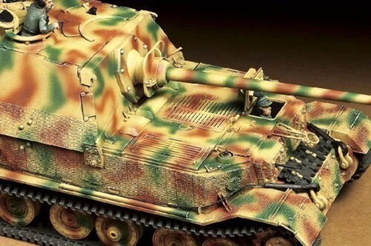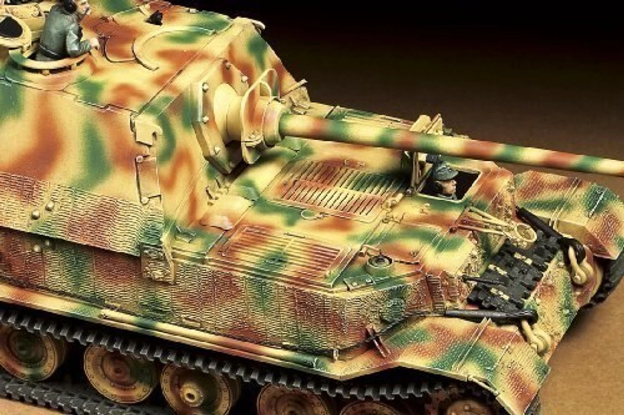 Wehrmacht Sd.Kfz.184 schwerer panzerjadger based on a modified Porsche proposed Tiger tank chassis fit with box superstructure and armed with a formidable 8.8cm PaK 43/2 L/71 anti-tank gun. Kit features finely rendered exterior surfaces (no zimmerit texture), Porsche pattern running gear with link-and-length track (molded with appropriate sag), rear stowage bin, optional position crew hatches, separately molded on-vehicle equipment, single-piece fighting compartment, 3 torso crew figures (commander, loader, driver) posed protruding from open hatches, optional position gun travel lock, Poly cap friction-fit bushings and nylon cord tow cable. Decals and color painting guide for 3 German vehicles: No 102 of the 1st Company, 653rd Heavy Anti-Tank Battalion in Italy, May 1944; No 332 of the 3rd Company, 653rd Heavy Anti-Tank Battalion on the Eastern Front, summer 1944 and No 232 of the 2nd Company, 653rd Heavy Anti-Tank Battalion on the Eastern Front, summer 1944